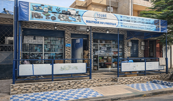 La première boutique Touré Computer Systèmes, située à la Médina sur la rue 3 X Blaise Diagne à Dakar, constitue le point de départ de notre engagement dans le domaine des solutions informatiques.