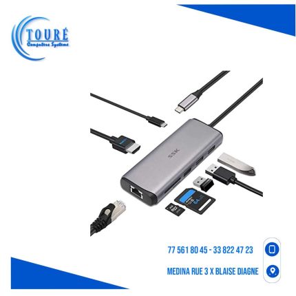 Hub USB C multi-ports : station d'accueil 8 ports USB C avec port HDMI 4K 60 Hz, un port de charge PD 100 W, une sortie audio stéréo 3,5 mm, 1 port USB 3.0 (5 Gbit/s), 2 ports USB 2.0 (480 Mbps), un lecteur de carte SD et TF (480 Mbps), répond à tous vos besoins.